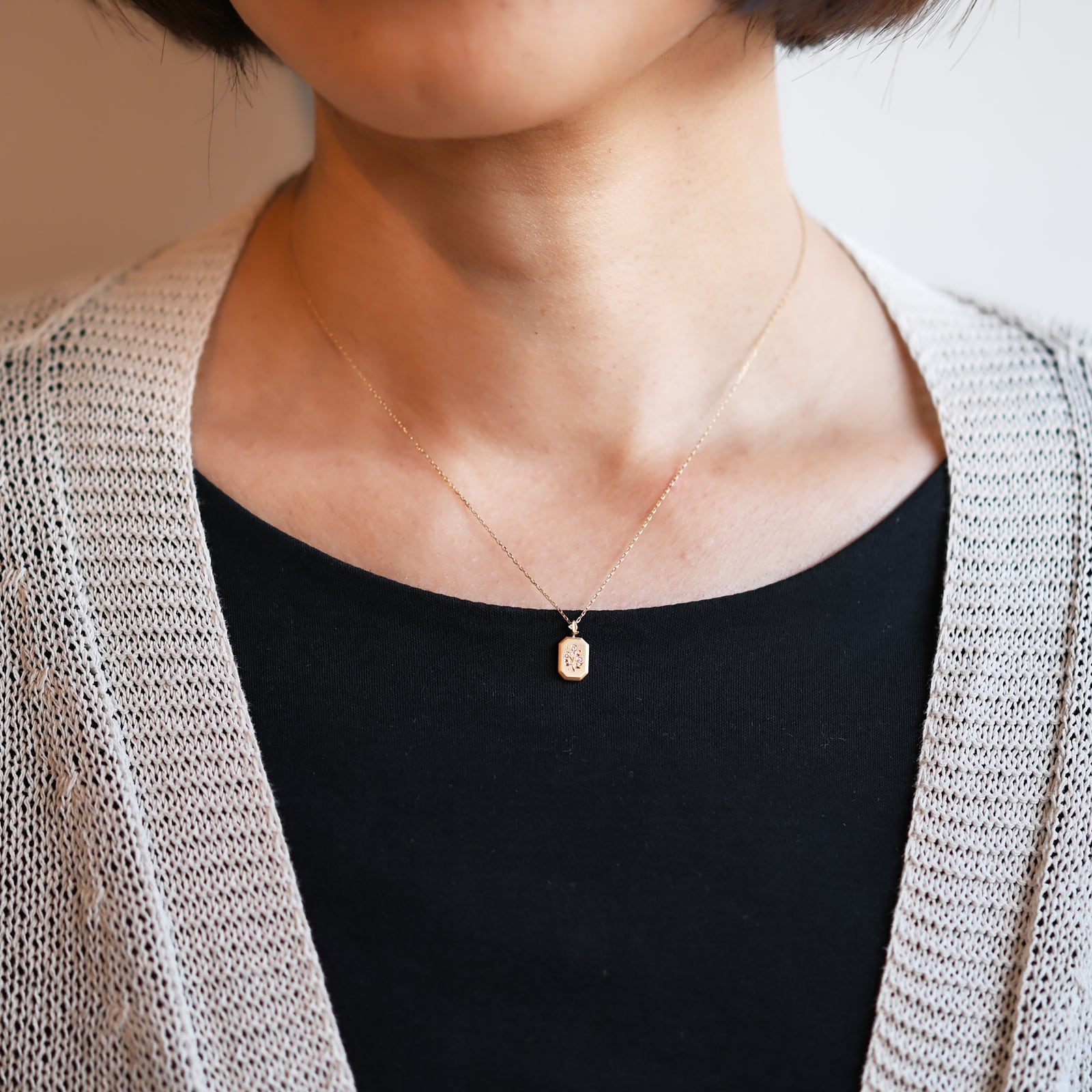 素材は全てK18イエローゴールド、細めのカット小豆チェーンで合わせました。
