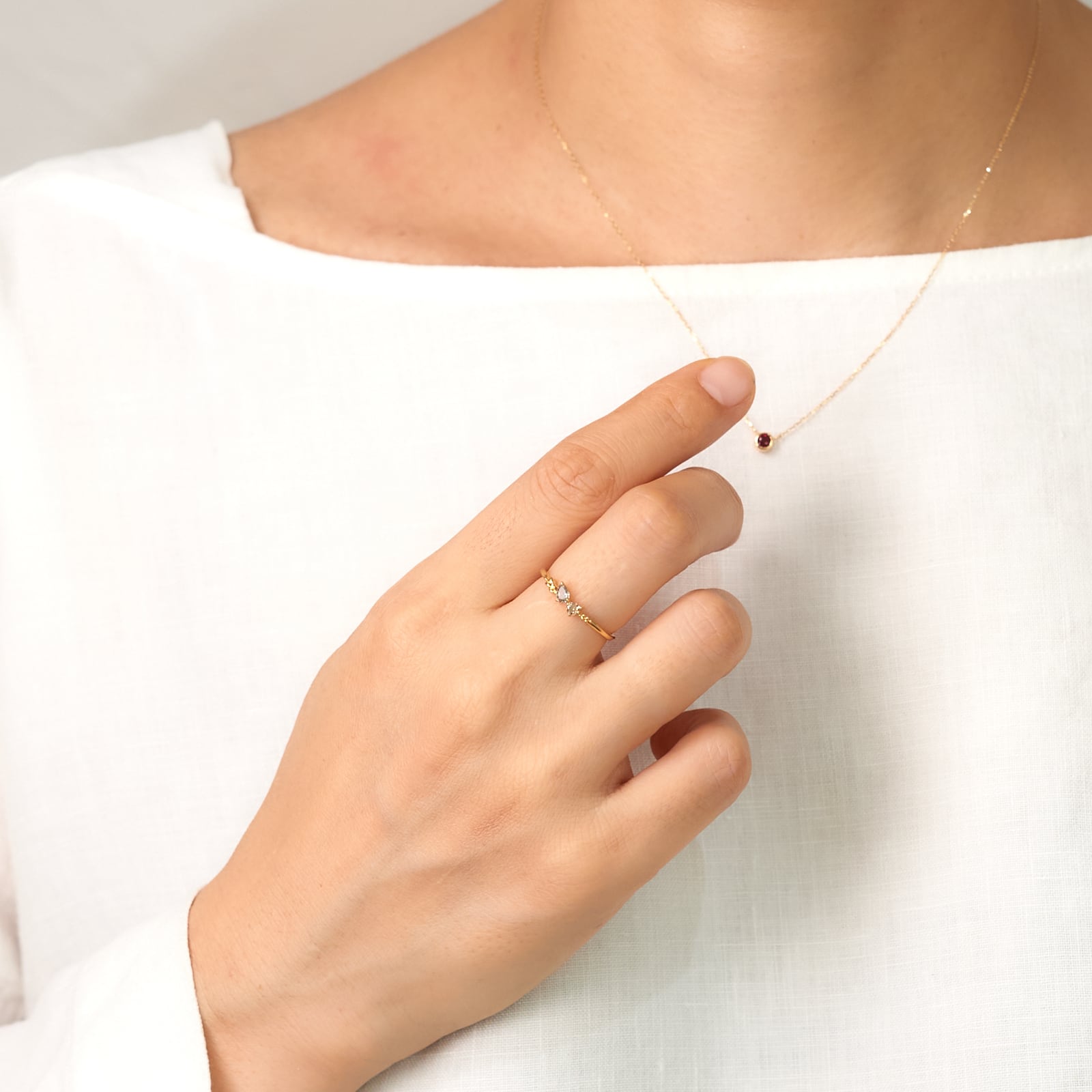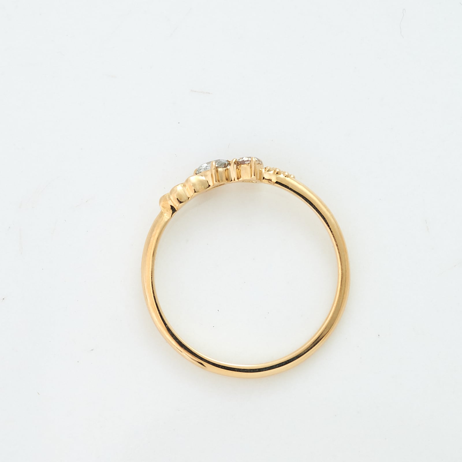アースカラーを彷彿されるカラーダイヤモンドのK18ゴールドリングは、他のリングと重ね付けていただいても馴染み良くお楽しみいただけると思います。