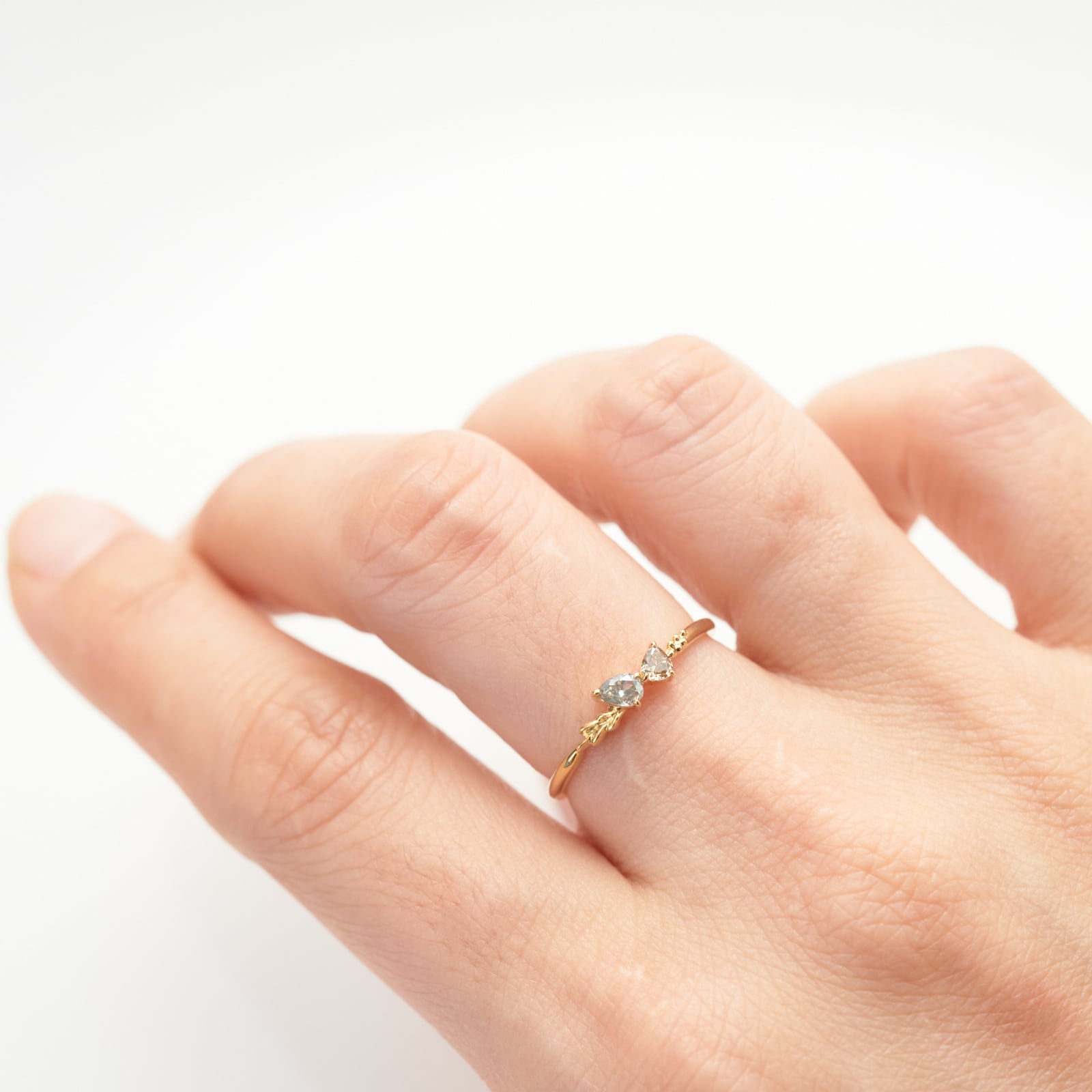 落ち着いたトーンの水色ダイヤモンドと、アンティークカラーのブラウンダイヤモンドの組み合わせに惹かれてお作りしたこちらのリング。